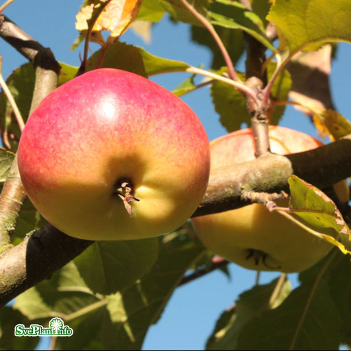 View full detailsÄpple 'Ingrid Marie' Info: Omtyckt juläpple som är ett gott bords och dessertäpple. Ätmoget: Nov-Jan. Frukten har gröngul grundfärg och röd täckfär...