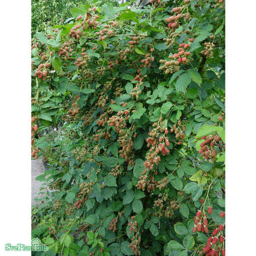 View full detailsBjörnbärshallon 'Tayberry' Info: Lätt sötsyrliga bär som är en korsning mellan björnbär och hallon. Växten har långa rankor som björnbär och bäret ...
