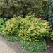 Japansk Järnek 'Golden Gem' Info: Kompakt, låg och långsamväxande städsegrön buske. Små buxbomslika gulgröna blad. Används som låg klippt häck och till formklippning. Bör vårvintertäckas från jan-mars med duk på solsidan för att inte få missprydande vinterskador. Mullrik, lätt fuktig men väldränerad, lätt sur jord. Höjd ca 0,6-0,8 meter, bredd ca 0,6-1 meter. Zon: 1-2(3) Läge: Sol - Halvskugga