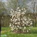 Hybridmagnolia 'Merrill' Info: Rikblommande magnolia som blommar på bar kvist på våren med doftande, rent vita blommor. Relativt snabbväxande buske eller träd med bredväxande grenar. Magnolia har känsligt och grunt rotsystem. Marktäckning bevarar fukt, isolerar mot hetta och frost. Trivs på en varm och skyddad växtplats Planteras i väldränerad, mull och näringsrik jord med lågt pH och god tillgång till markfukt. Blir cirka 3-5 meter hög. Zon: 1-3 Läge: Sol - Halvskugga