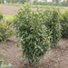 Lagerhägg Genolia® ('Mariblon'*) Info: Smalväxande upprätt växtsätt. Städsegröna, långsmala, glänsande, mörkgröna blad. Blommar med vita blomklasar i maj-juni som ger svarta bär till hösten. Behöver stå skyddad från vind och stark vårvintersol för att inte få fula brända bladkanter. Täck solsidan med skuggväv från januari till mars. Utvecklas bäst i näringsrik, väldränerad och mullrik jord med god tillgång till fukt. Höjd och bredd 2,5–4 meter, bredd ca 1 meter. Zon: 1-3 Läge: Sol - Skugga