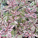 Rosenprakttry Monet Info: Liten, kompakt buske. Mörkgröna blad med bruna inslag och krämvita till kraftigt rosafärgade ränder. Lysande rosa blommor i maj-juni. Användbar som kontrastväxt i rabatt alternativt låga häckar. Föredrar ett lugnt skyddat läge och näringsrik jord. Höjd ca 50–70 cm, bredd 70–100 cm. Zon: 1-3 Läge: Sol - Halvskugga