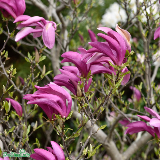 View full detailsRosenmagnolia 'Susan' Info: Flerstammig, tät magnolia med stora upprätta blommor med djuprrosa utsida och ljusare insida. Blommar under bladsprickn...
