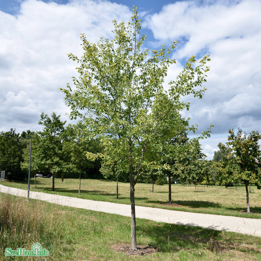 Silveroxel E Info: Prydnadsträd med tät, pyramidal krona. Lättodlad och vindtåligt träd. Mörkt gröna blad, silverluden bladundersida. Sparsam blomn...