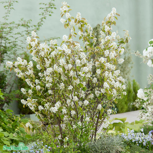 Rönnbärsapel Fk Göteborg E Info: Större buske/mindre träd med rundat växtsätt. Vita blommor i maj-juni. Blomningen efterföljs av små dekorativa ora...
