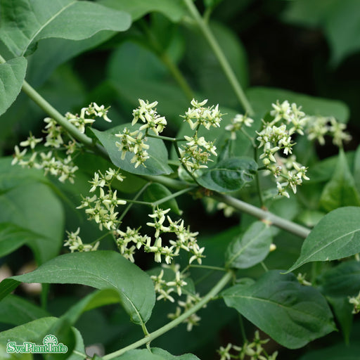 Benved 'Red Cascade' Info: Medelstor buske med öppet växtsätt eller litet träd. Bruna dekorativa korklister på grenarna. Får vackra fina röda frukt...