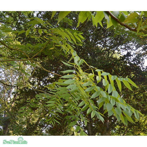 Svart Valnöt Info: Stort elegant parkträd med genomgående stam och välvd krona. Bladen är sammansatta av smala, spetsiga småblad som får en gylleng...