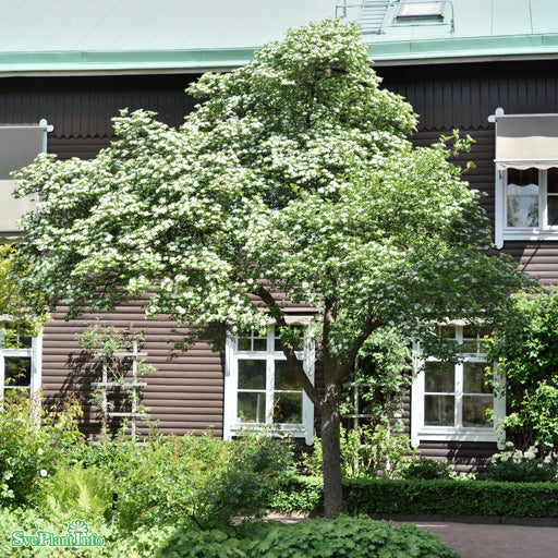 View full detailsTrubbhagtorn Info: Stor användbar buske med brett växtsätt, alternativt som uppstammat träd. Rikligt med vita blommor i maj. Röda frukter på sensom...