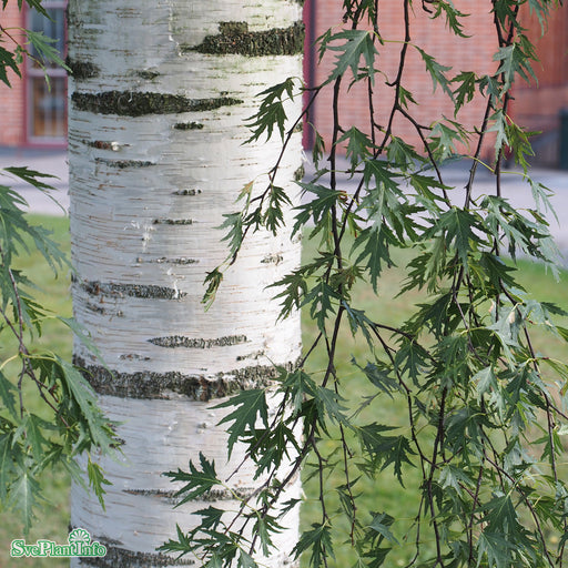 View full detailsOrnäsbjörk Info: Vackert träd med upprättväxande med grova grenar och hängande grenspetsar. Gracila, finflikiga gröna blad. Vackert vit stam. Urpru...