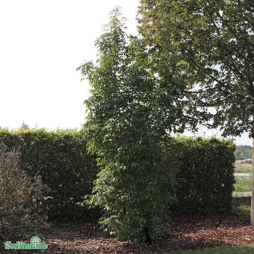 View full detailsLagerhägg 'Mano' Info: Lågväxande, vintergrön buske med mörkgröna blad. Blommar med vita blomklasar i maj-juni som ger svarta bär till hösten. Behö...