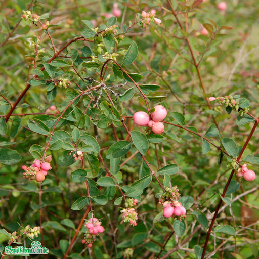 View full detailsDoorenbossnöbär 'Mother Of Pearl' Info: Dekorativ buske med brett, upprätt växtsätt. Rosa blommor i juni-augusti. Vita och rosa bär. Fin till under...