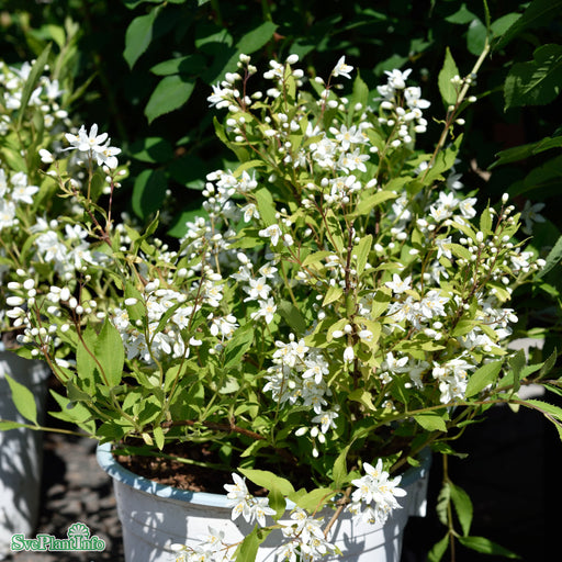 View full detailsRosendeutzia Yuki Snowflake® ('Ncdx1'*) Info: Kompakt växande vacker prydnadsbuske. Vita dekorativa skira blommor i juni-juli. Fin marktäckare, i l...