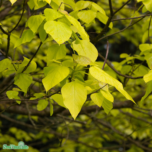 View full detailsKatalpa 'Aurea' Info: Bred krona. Vita blommor med gulröda strimmor. Solig och varm växtplats. Blad vid knoppsprickning gula, sedan övergående i lj...