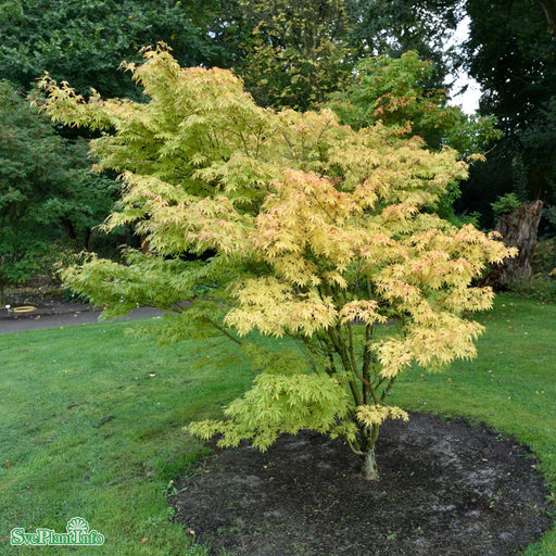 Japansk Lönn Info: Mindre träd/buskträd med vasformigt upprätt växtsätt. Flikiga gröna blad, roströd nytillväxt, gulröd höstfärg. Trivs i fuktig me...