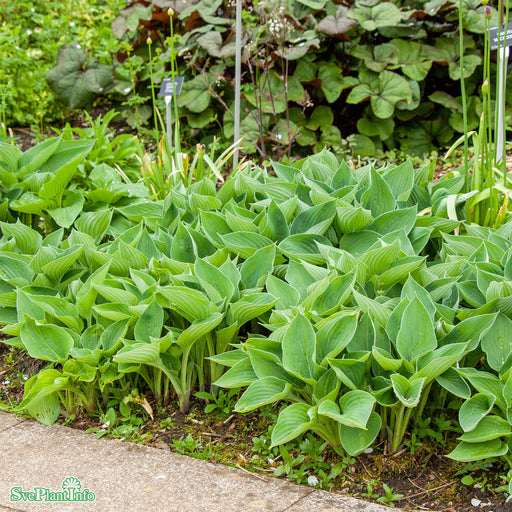View full detailsFunkia 'Diamond Lake' Info: Diamond Lake har stora blågrå blad med krusig kant. Stänglar med klocklika ljusvioletta blommor i juli-augusti. Trivs b...