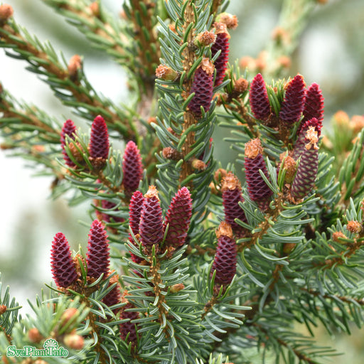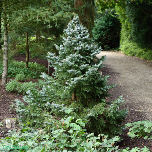 Serbgran Info: Smalt pyramidal-pelarformig gran med bågformiga grenar. Mörkt gröna barr med silvervit undersida. Användbar som solitär, grupp, häck...