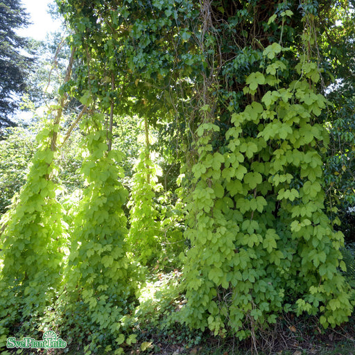 View full detailsGuldhumle Info: Snabbväxande perenn klätterväxt där de långa årsskotten vissnar ner varje år. Treflikiga sträva blad. Självfertil honplanta. Gröna ...