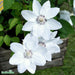 Klematis (Tid.Storbl.) 'Miss Bateman' Info: Mycket vacker och prisbelönt äldre sort med riklig blomning i juni-juli. Blommar med 10-14 cm stora vita blommor med purpurröda ståndare i juni-juli. Kan remontera på sensommaren. Föredrar djup, näringsrik, lätt fuktig men väldränerad jord. Klänger i buske, klätterros och spaljé eller i större kruka. Höjd 2-3 meter. Beskärningsgrupp 2. Blommar såväl på fjolårsskott som på årsskott. Ingen radikal beskärning. Gallra och klipp bort tunna döda grenar på våren. Beskär grenar på olika höjd av plantan för en jämn och fin grönska och blomning. Zon: 1-4 Läge: Sol - Halvskugga