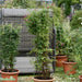 Viticella-Klematis 'Mme Julia Correvon' Info: Omtyckt och prisbelönt äldre sort. Mycket rikblommande. Blommar med 7-14 cm stora, rubinröda blommor i juli-september. Föredrar djup, näringsrik, lätt fuktig men väldränerad jord. Lämplig att odla vid större buskar, pergolor, träd och spaljéer. Kan även odlas i större krukor. Höjd 3-3,5 meter. Beskärningsgrupp 3. Blommar på årsskotten alltså lite senare på säsongen. Beskärs under våren till ca 20-30 cm ovan mark. Zon: 1-4 Läge: Sol - Skugga