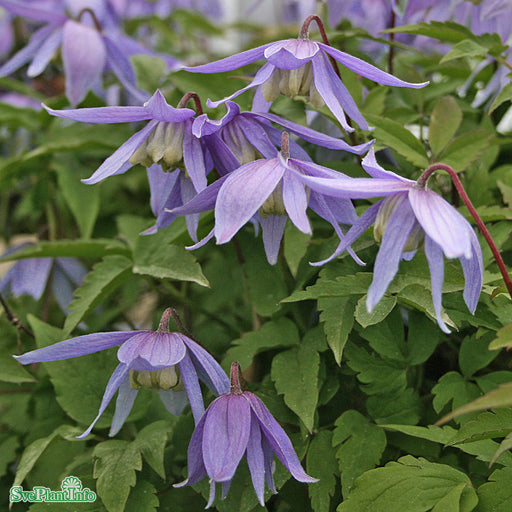 View full detailsAlpklematis Info: Vacker och mycket härdig klematis som trivs bra även i norr och i blåsiga lägen. Blommar med 2,5-5 cm stora violettblå klockor i ...