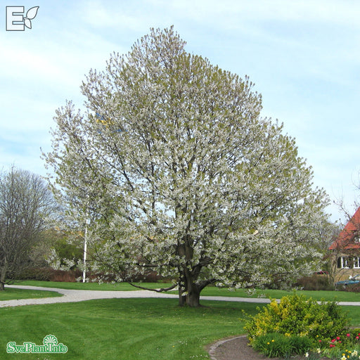 Fågelbär, Sötkörsbär E Info: Snabbväxande större träd. Riklig vit blomning i maj. Små gula-svartröda körsbär och gulröd höstfärg. Vackert träd för ...