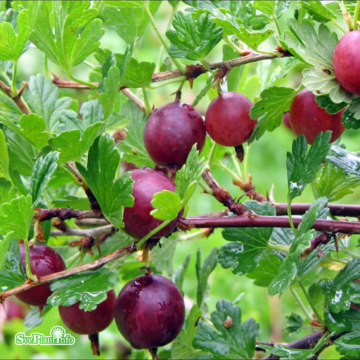 Krusbär 'Captivator' Info: Nästan helt taggfri krusbärsort. Stora rödlila bär med en söt smak. Passar utmärkt till sylt, saft, kräm och att ätas di...