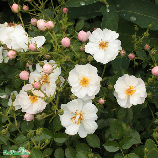 View full detailsModern Buskros 'Sea Foam' Info: Lågvuxen buskros med tätt utbrett växtsätt. Crèmevita tätt fylllda vita blommor i klasar. Svag fin doft. Blommar ko...