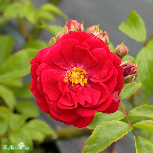View full detailsModern Buskros Intense Cover® Info: Tätt och buskigt växtsätt. Mörka gröna glänsande blad. Röda små halvfyllda blommor. Svag fin doft. Blommar kont...