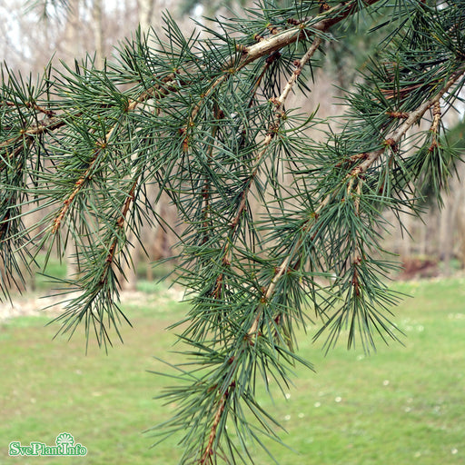 Blå Atlasceder Info: Ett iögonfallande vackert exotiskt barrträd med blåsilvriga barr. Oregelbunden krona med långa horisontella till svagt uppåtri...