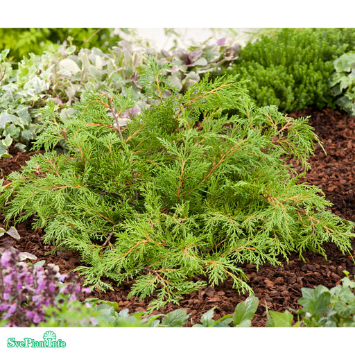 Kryptuja Info: Graciöst, utbrett, nedliggande växtsätt. Smaragdgrön med bronsfärgning på vintern. Mycket bra marktäckare särskilt i halvskugga. Rel...