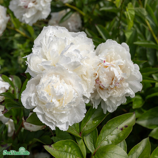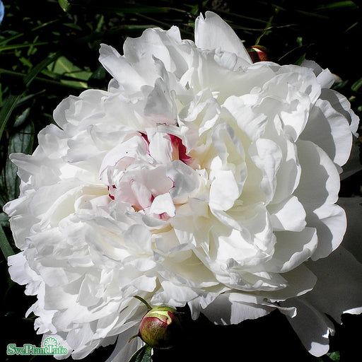 Luktpion 'Festiva Maxima' Info: Perenn med buskigt växtsätt. Blommar i juni-juli med vita fyllda starkt doftande blommor som är svagt rosa när de s...