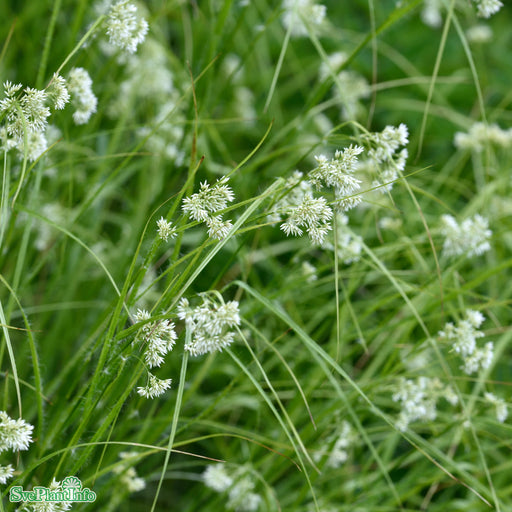 Storfryle Info: Tuvbildande gräsliknande växt som trivs i sol-skugga. Höjd 20 cm. Blommar med 60 cm höga bruna ax i juni-juli. Smala långa gröna bl...