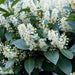 Lagerhägg 'Mano' Info: Lågväxande, vintergrön buske med mörkgröna blad. Blommar med vita blomklasar i maj-juni som ger svarta bär till hösten. Behöver stå skyddad från vind och stark vårvintersol för att inte få fula brända bladkanter. Täck solsidan med skuggväv från januari till mars. Utvecklas bäst i näringsrik, väldränerad och mullrik jord med god tillgång till fukt. Blir cirka 1 m hög och bred. Zon: 1-3(4) Läge: Sol - Skugga