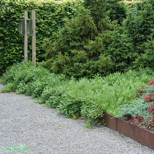 Lagerhägg Genolia® ('Mariblon'*) Info: Smalväxande upprätt växtsätt. Städsegröna, långsmala, glänsande, mörkgröna blad. Blommar med vita blomklasar...