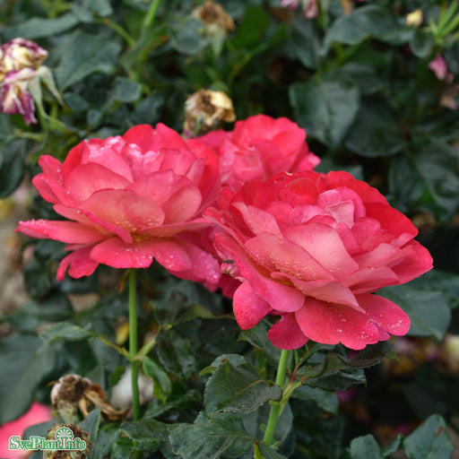 Floribundaros Aspirin® ('Taniripsa'*) Info: Tätt växtsätt och friskt glänsande, läderartat bladver. Medelstora tätt fyllda ljusrosa blommor i klasa...