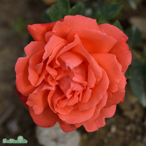 Tehybridros Super Star ('Tanorstar') Info: Kraftigt och tätt växtsätt. Frodigt gråaktig mörkgrönt svagt glänsande bladverk. Röda stora fyllda blomm...
