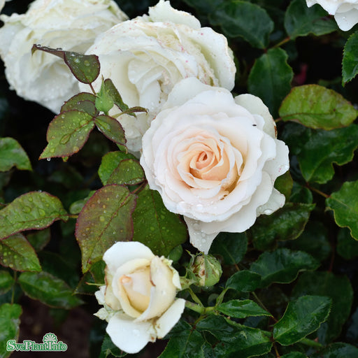 View full detailsModern Buskros Lina Renaissance® Info: Vacker ros med tätt upprätt växtsätt och mörgrönt glansigt bladverk. Vita stora fyllda blommor. Svagt doftan...
