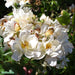 Moschata-Ros 'Thisbe' Info: Ros med tätt och brett växtsätt. Vackra dekorativa nypon på hösten. Medelstor halvfylld blomma. Ljusgul färg som bleknar till vitt mot slutet av blomningen. Starkt doftande. Blommar kontinuerligt från midsommar till hösten. Trivs i djup, näringsrik och väldränerad jord. Höjd och bredd ca 1,2 meter. Zon: 1-4 Läge: Sol