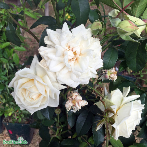 View full detailsModern Buskros Winchester Cathedral® Info: Austinros med kraftigt, tätt växtsätt och vackert bladverk. Stora mjölkvita till svagt rosa tätt fyllda ...