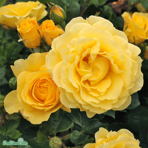 View full detailsFloribundaros Gripsholm ('Poullug'*) Info: Vacker ros med tätt upprätt växtsätt. Mörgula medelstora fyllda blommor. Svag fin doft. Blommar kontinue...