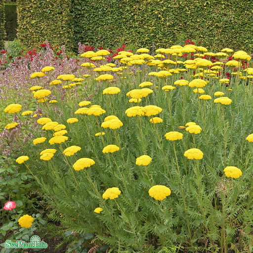 View full detailsPraktröllika 'Parker's Variety' Info: Upprätt tuvbildande perenn. Stora, mörkgula, välvda blomflockar i juni-augusti. Grågrönt, flikigt bladverk. L...