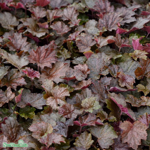 View full detailsLönnalunrot 'Palace Purple' Info: Perenn med frodigt tuvbildande växtsätt. Dekorativt brunrött bladverk. Små klocklika vita blommor på höga stängla...